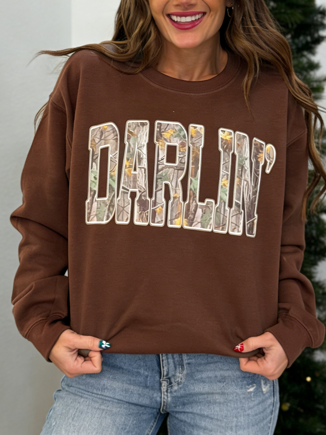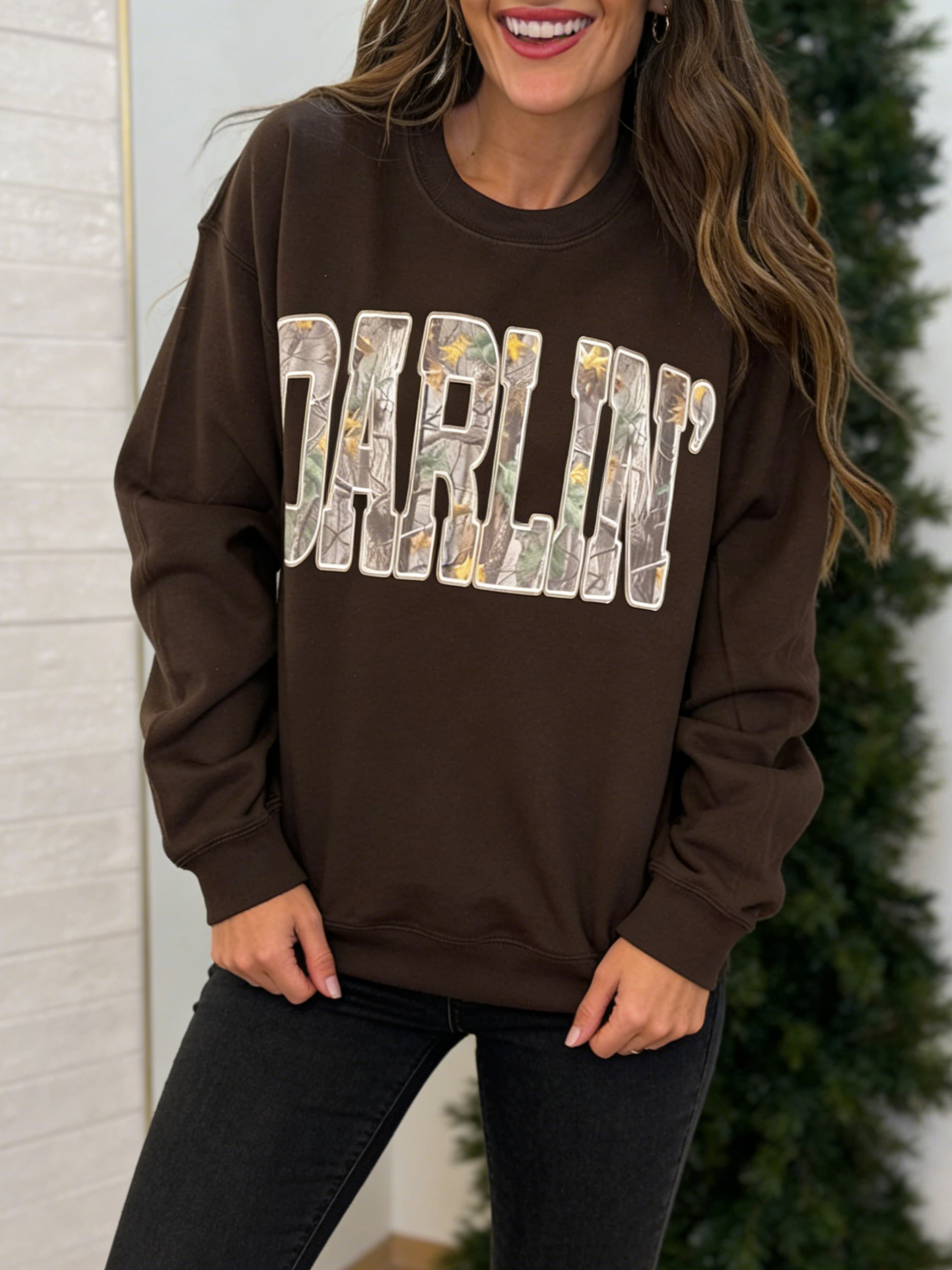 - Design: "DARLIN'" graphic (camouflage print + white outline)