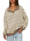 Women's Oversized Contrast Long Sleeve Striped Sweatshirts