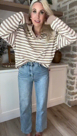 The timeless polo sweatshirt is perfect for fall but also adaptable for winter layering or cooler spring days. The striped design adds a timeless, dynamic visual appeal, making the sweatshirt more lively and versatile for styling.?