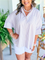 Women's Striped Button Shirt Side Slit Hem Swing Top