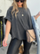 Washed Roll Sleeve Studded Oversized Short Sleeve Top