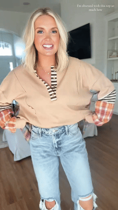 Women's Striped And Plaid Patchwork Top