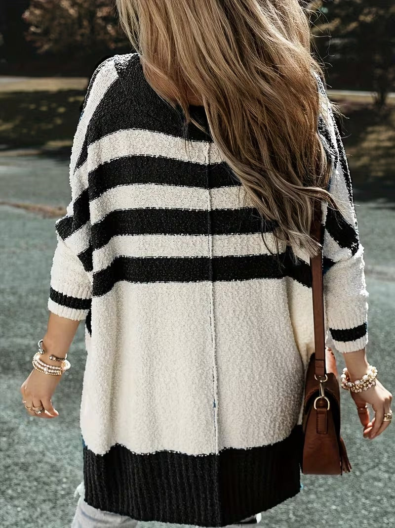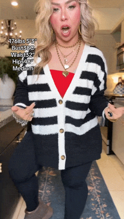 Elevate your wardrobe with this chic Women¡¯s Striped Knit Cardigan, available in classic black or white and sizes L/XL. Soft, stylish, and perfect for layering¡ªbuy two and enjoy free shipping!