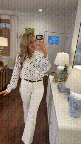 Elegant Women's V Neck Half Button Down Business Blouses feature a stylish polka dot design and front cardigan detail. Perfect for office wear, enjoy free shipping when you buy two.